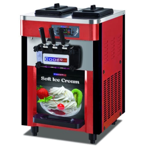 Фризер для мягкого мороженого Cooleq IFE-3 в аренду 3 рожка, 3 вкуса, 2 емкости по 3,5 литра, производительность 20 литров в час, производит мягкое мороженое, оснащён двумя бункерами и тремя рожками, позволяет предлагать клиентам 3 вкуса (2 + 1 смешанный), мощность 1,7 кВт, высота 850 мм, ширина 540 мм, глубина 750 мм